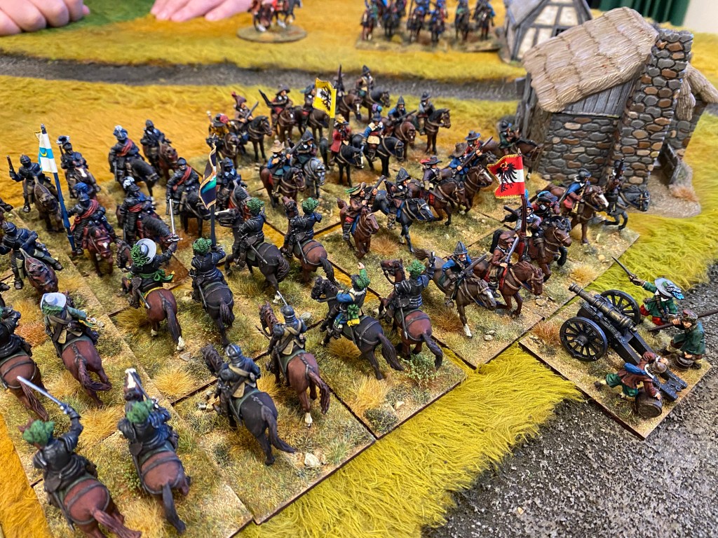 The game became a bloody encounter with plenty of ebb and flow between the two armies. Both sides’ right wing of cavalry eventually overcame their opposite numbers, but were not able to then fall on the flank of the enemy infantry centres. Wallenstein led a final epic charge with the pike from his own regiment into weakened unit of Swedish infantry. However the Imperial generalissimo was not able to break through with the Swedish foot heroically holding on and refusing to break.