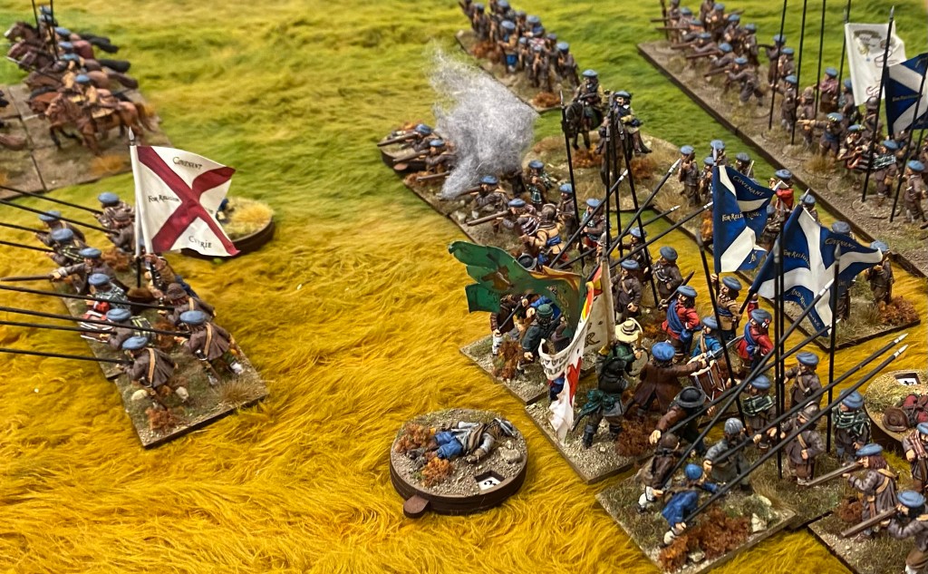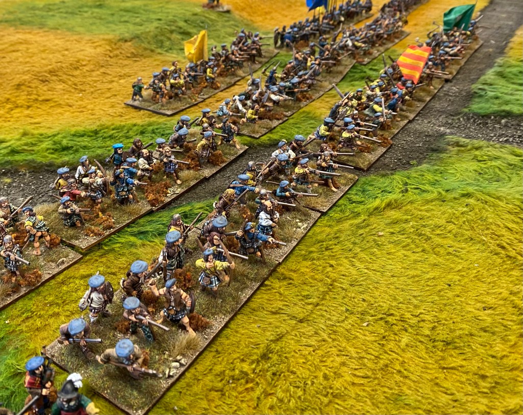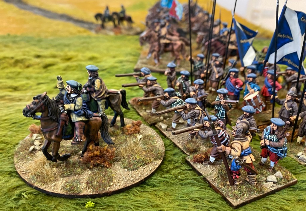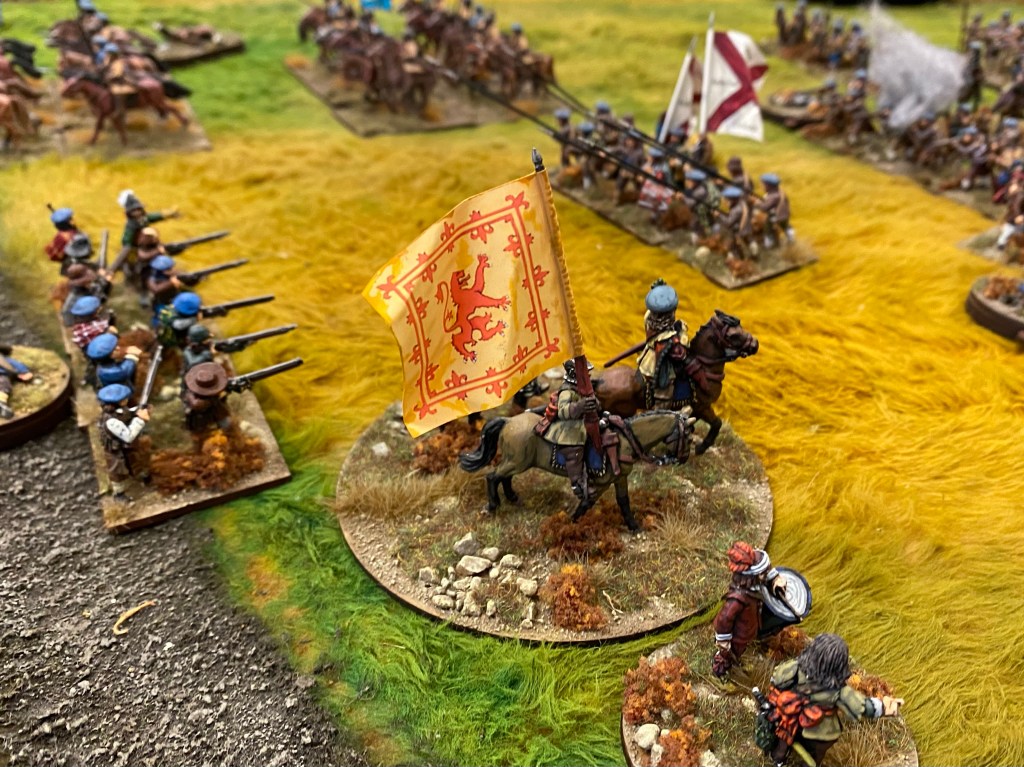 The command dice favoured the Royalists early on and the Covenanters struggled to get their troops on to the battlefield and deployed. A sneaky Covenant flank march provided a great opportunity to wrong foot the King’s representative in Scotland, but it was not to be and the Covenanters finally went down under a fury of claymores and musket butts.