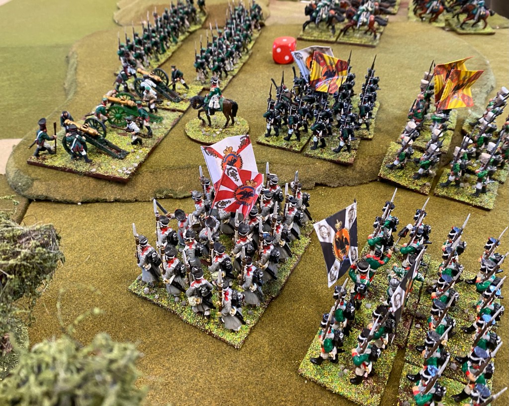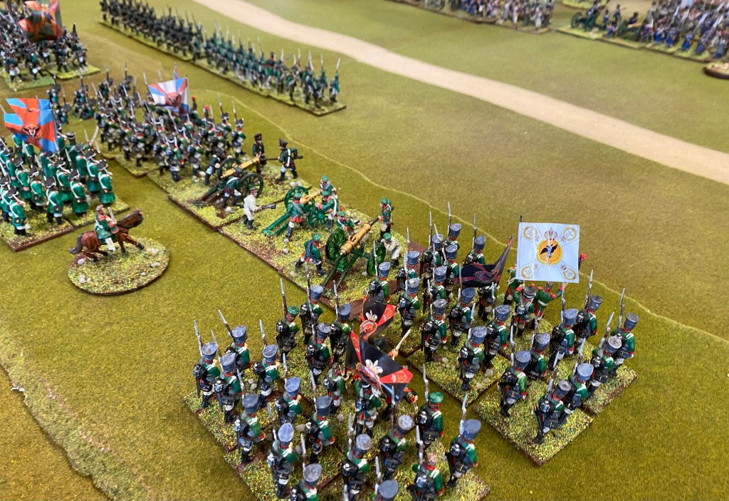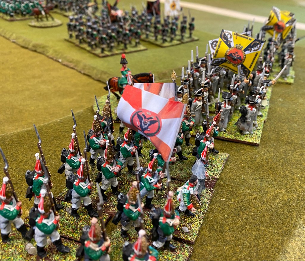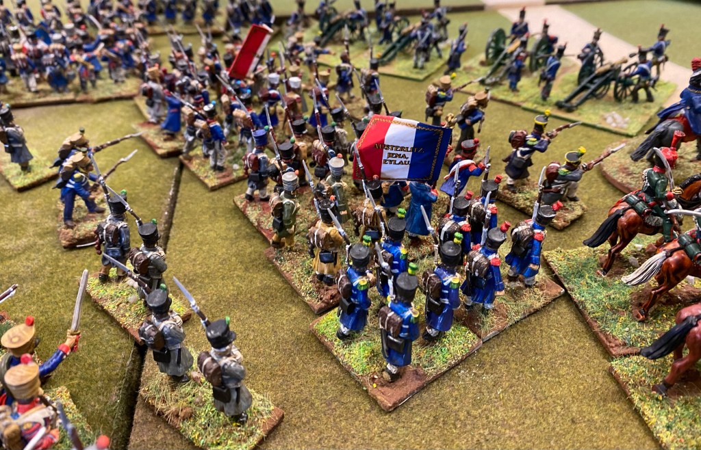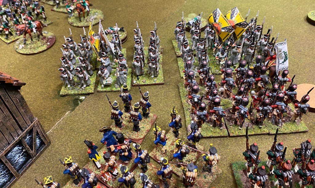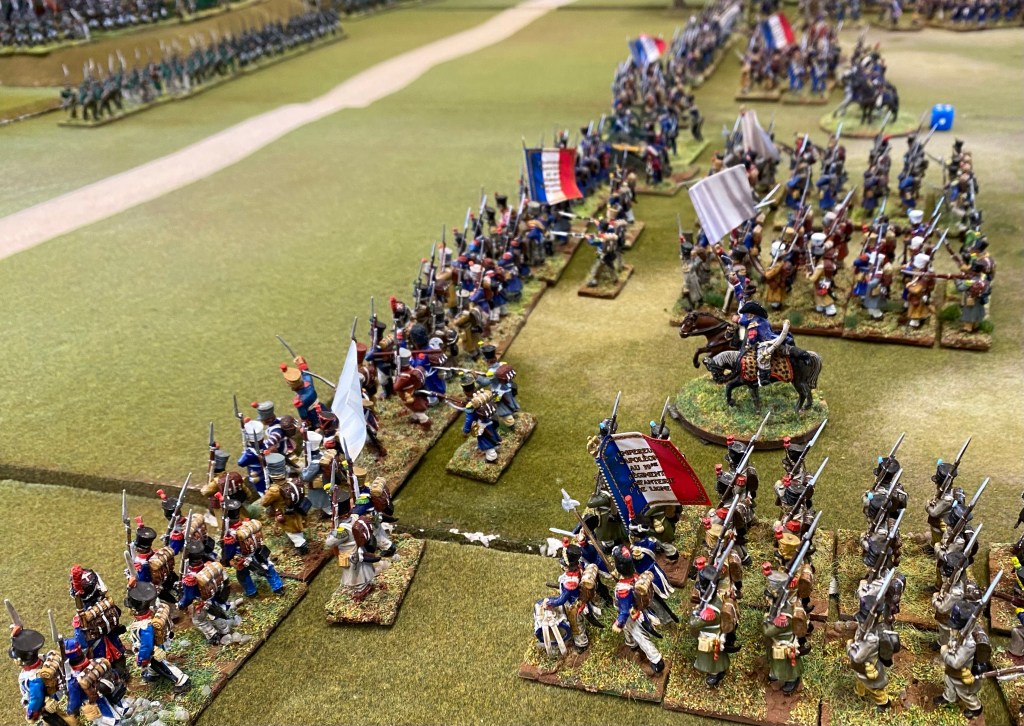 The pictures give a lovely view of the colourfulness of the uniforms, the large expanse of the battlefield needed. Looks great. Several of the French units seem to have white standards. Is this the first instance of the French being ready to surrender when the going gets tough? (tongue firmly in cheek)