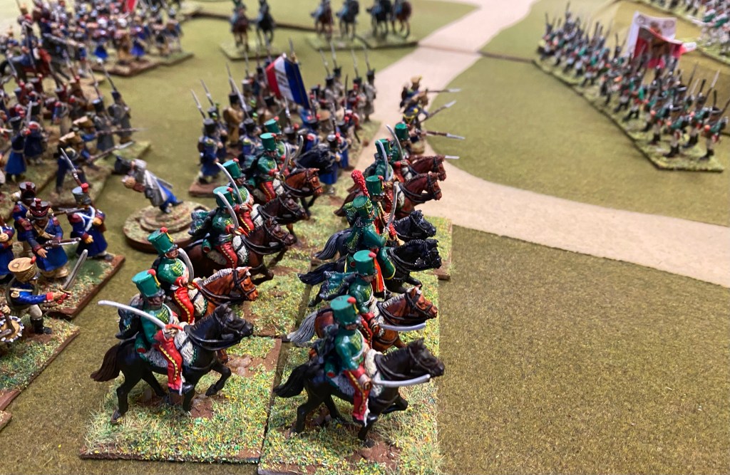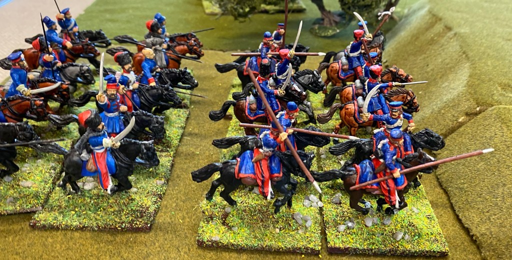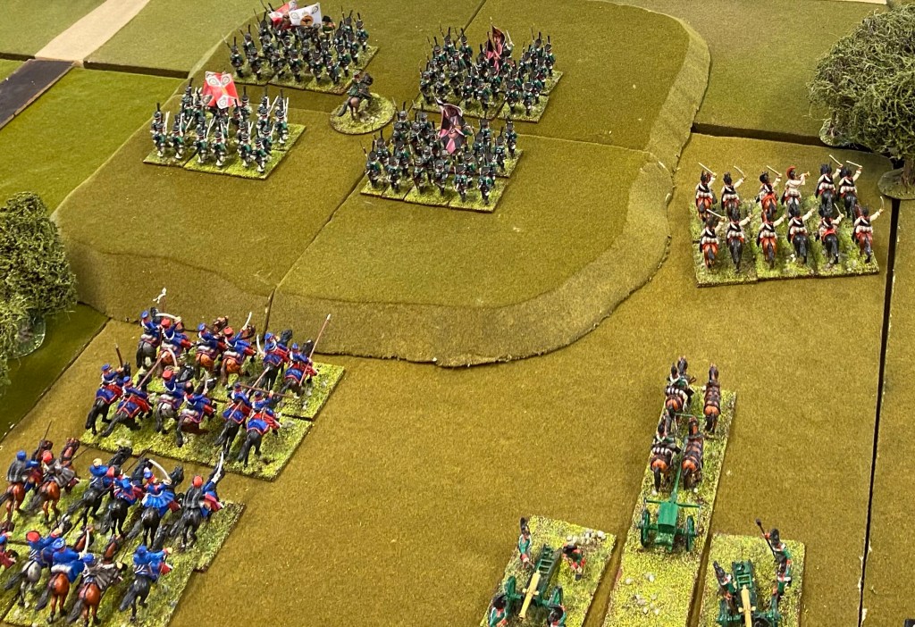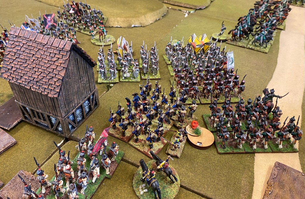 A large and hard fought game with a strong force of French and allied troops attacking a Russian force. Lots of action across the table with the French finally finding a breakthrough on their left flank at the end of the day.