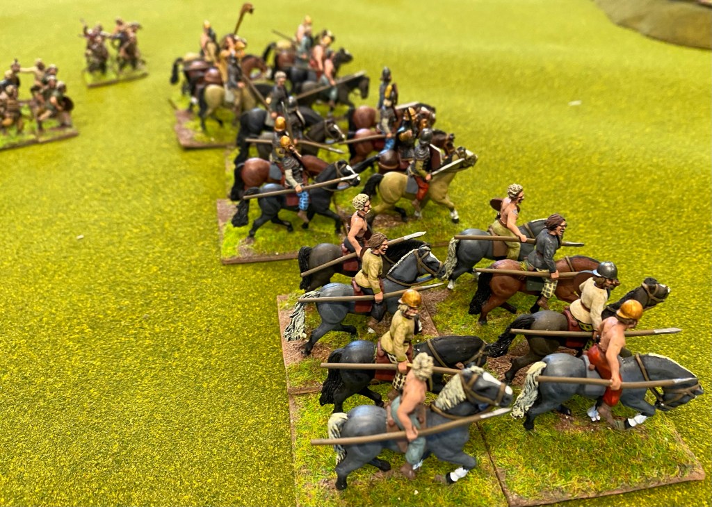 The Neil Thomas rule sets continue to be popular at the club and this was a classic clash of Romans versus the unwashed barbarian hordes – in this case Gauls. The Romans did not shrink from battle and ploughed forward in to the enemy masses. The Gallic chariots and horse were able to fold in the Roman flanks and the legions ran out of steam, and men .