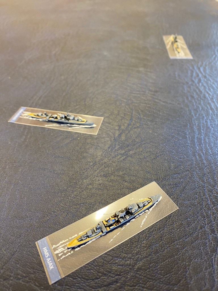 A crushing victory for the Germans! Ajax and Achilles are left badly damaged as Graf Spee makes a run for Montevideo due to a ruptured fuel system. A parting torpedo spread sank the Achilles whilst Ajax was crippled by repeated 11” hits. “There is something wrong with our ships today”!