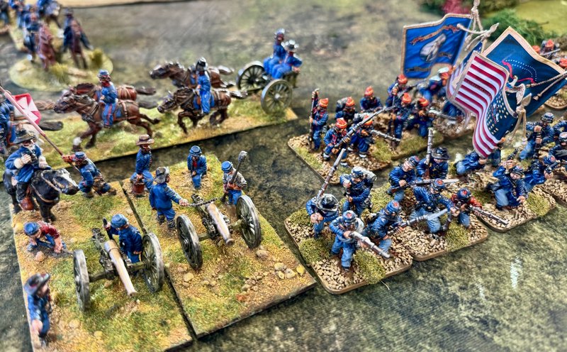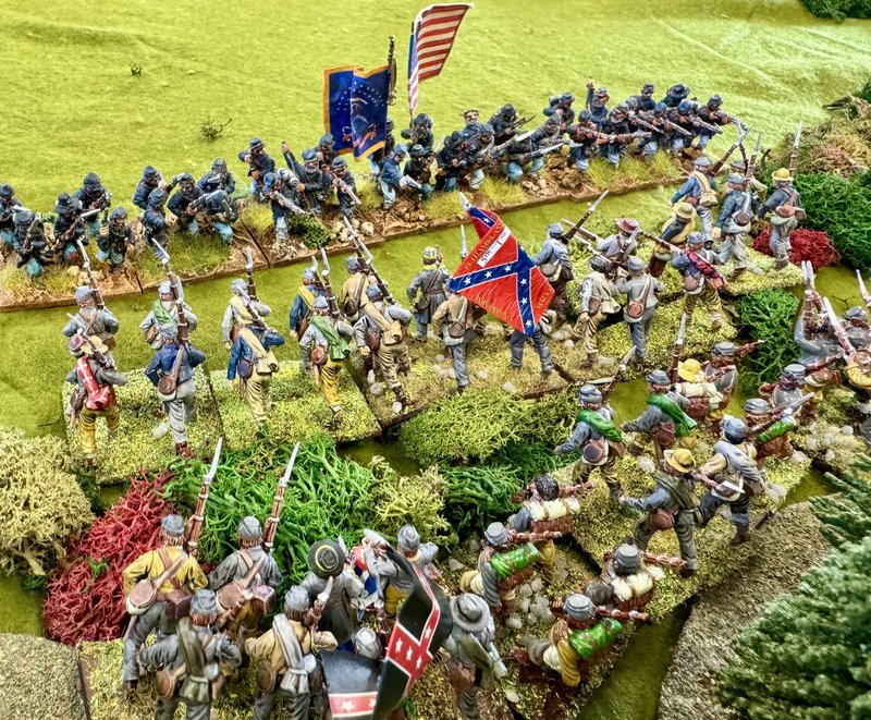 This game refought the battle of Lula 1862, taken from (page 136 for those following along at home!) of the Glory Hallelujah supplement for Black Powder. After 7 turns the Confederate army of the West remained in charge of the cross roads and so scored a victory. A very nice looking game that included just about every tree that the club could muster! I’m sure the Federals will be back seeking their revenge.