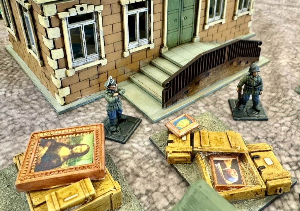 02 Hundred Hours is a small scale skirmish game in which one side is a small, elite force attempting to carry out a covert operation, and the other side are the guards or sentries whose job it is to foil their plans. This game pitted a force of British special forces commandoes attempting to retrieve a painting (‘The Fallen Madonna’) from a Chateau, somewhere in occupied Europe, that was defended by a large force of German infantry, who were liberating artworks for the Reich.