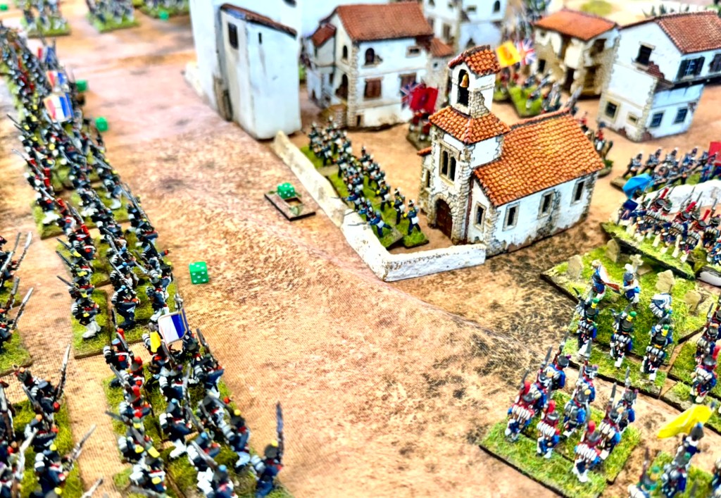 Mr. Thomas’ various wargames books have been having quite a few run outs at the club over the last 12 months or so. This time was at the turn of his ‘One Hour’ book of scenarios that was used for a refight of Battle of Fuentes de Oñoro (1811). The game worked well, although at this size of engagement it took the whole afternoon rather than just an hour! The French attack was soundly beaten and repulsed, with the Portuguese giving excellent service, also suffering the majority of the allied casualties.