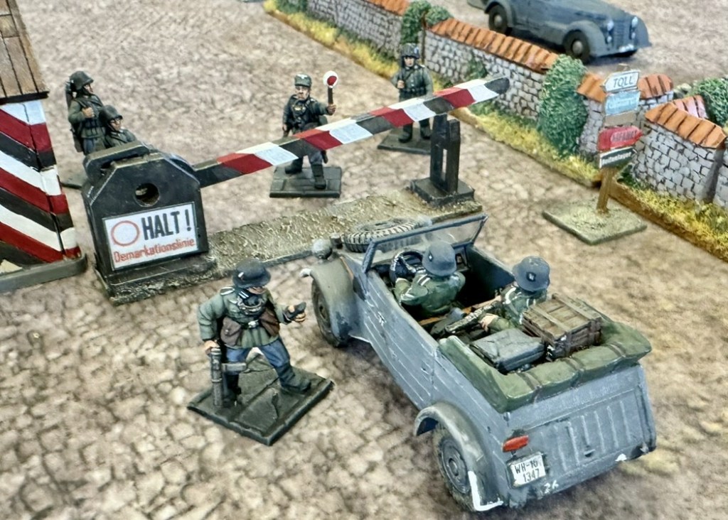 The games system is simple but cleverly allows for one side to go sneaking about in the dark, while the sentries etc. patrol the grounds, investigating anything suspicious. Over the afternoon we managed to play a game through that saw the British get hopelessly embroiled in a fight with the guards before getting anywhere near the Chateau itself. After stopping for tea (and cake!) we swapped sides and played again; this time with the commandoes efficiently ‘eliminating the guards’ and making it off with the painting.