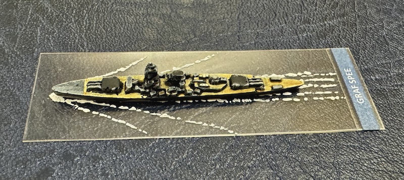 Another ‘learning the rules’ game using this classic encounter from 1939 as the scenario. Teeny tiny ships!