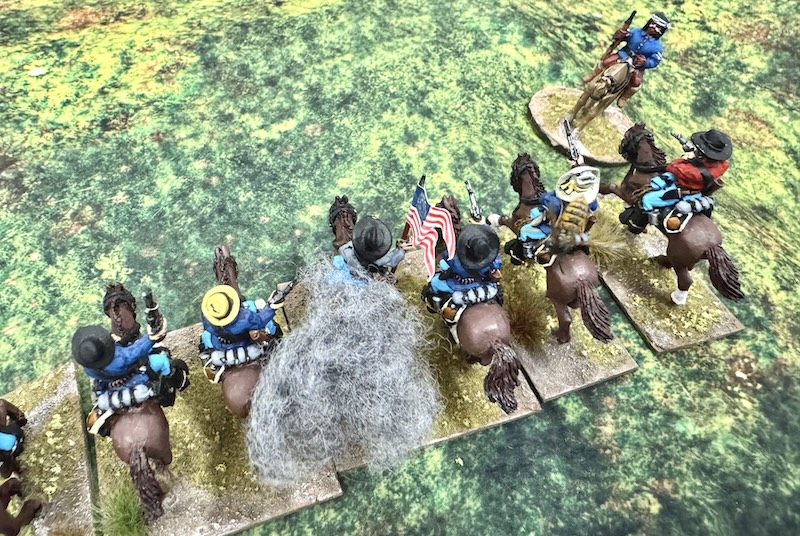 As part of a play test using Black Powder for Pony Wars, the Fort Apache mini-campaign from Wargames Illustrated (WI 363 Jan 2018 – Hurray for Hollywood) was played. Although we didn’t get right to the end of the campaign we did play out several encounters. With some special rules, and randomised movement for the Apache, the Black Powder system worked very well and gave a very enjoyable and entertaining game. (Could this be the first suggestion of a new BP Supplement? We will have to wait and see!)