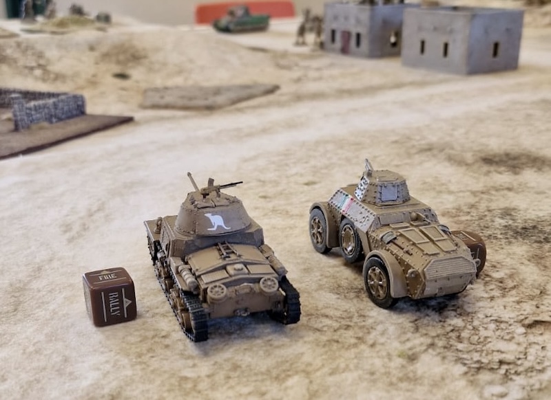 The British had control of the high ground to the North with a small tank platoon cautiously advancing down a side road. With the help of a small Italian Somalian platoon the Italians attacked from the South.