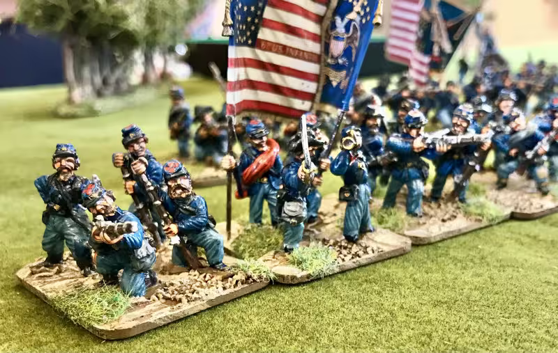 A club of two games this week. ACW keeps rolling on with another game of this increasingly popular (at FOGH anyway) period. There were also many timbers shivered in a classic Pirate game. 28mm ACW – Warlord Games Black Powder with Glory Hallelujah! There were three people’s collections on the table for this game. WithContinue reading “FOGH Club Games – Saturday 9th March 2024”
