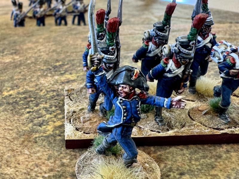 Following on from last club’s scenario, while the rules were still fresh in our minds (!), this engagement saw the British force continue their pursuit of the French. The French had been reinforced and turned to hopefully give Les rosbifs a bloody nose. A close engagement with both sides’ infantry taking the lead in attack. After a run of lucky dice for the French, and some appalling luck for the British, Napoleon’s boys brought home the bacon!