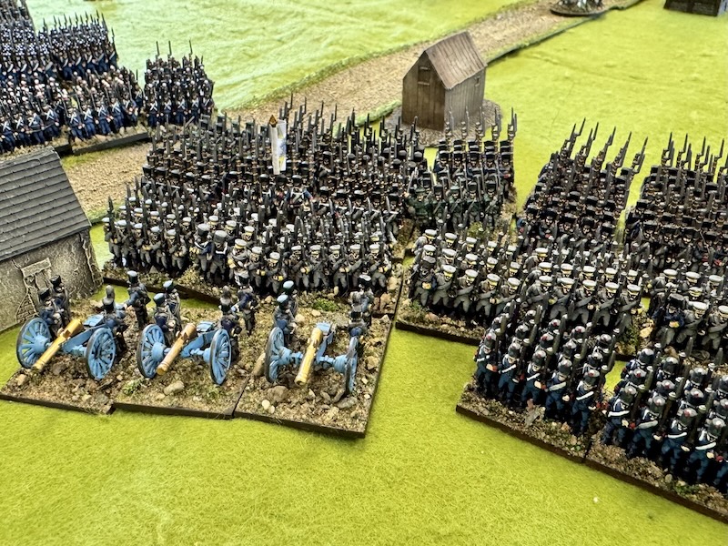 Epic scale troops, epic figure conversions, and epic numbers of troops all led to an epic looking Napoleonic struggle. The black and blue Prussian steam-roller tried to flatten a French force, with Saxon Allies, that was defending a strongly fortified position. The massed battalions from both sides boiled around the French redoubts, neither side seemingly willing to give way. Eventually the French managed to hang-on and kept the field, while the stalwart Prussians retired to plot their revenge.
